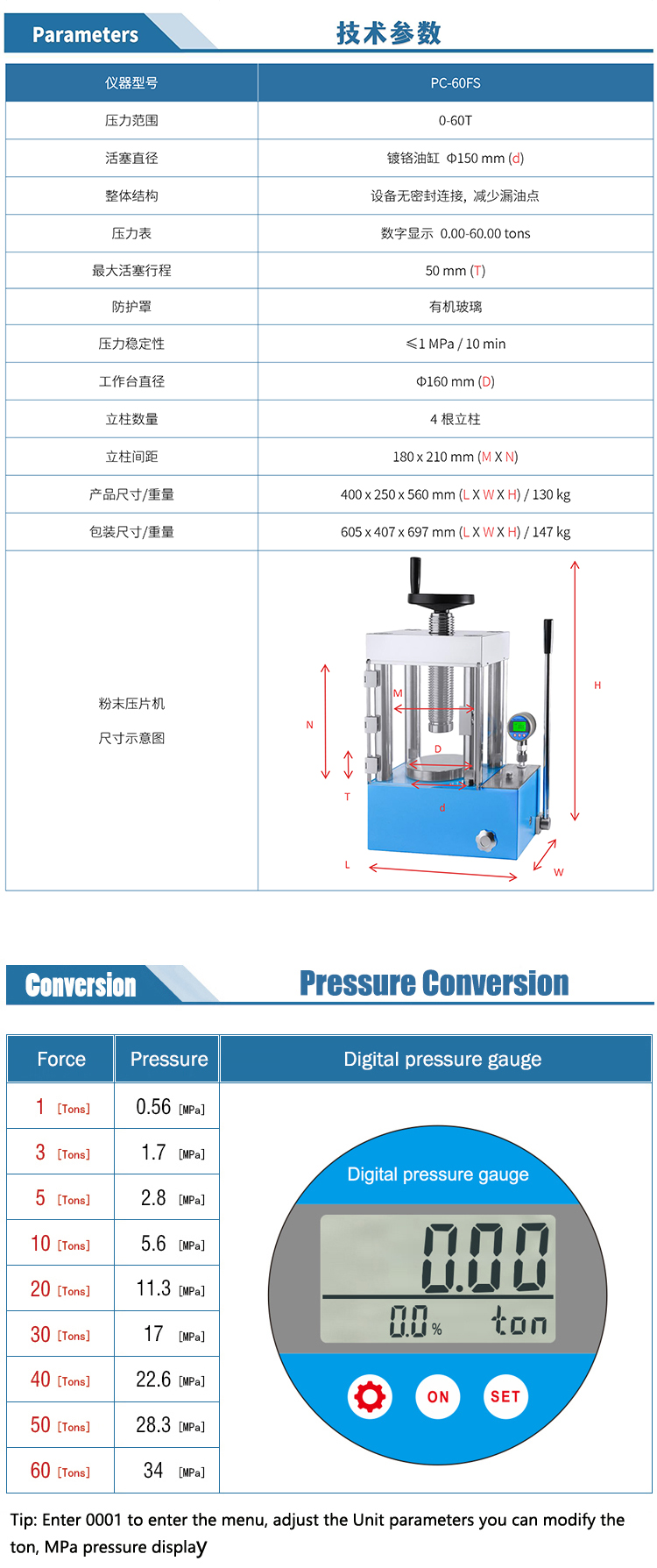 防护型手动数显压片机[60吨]